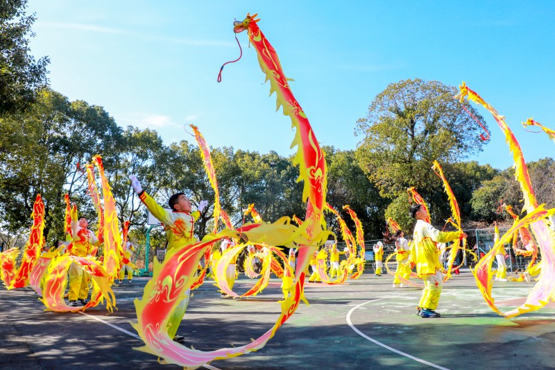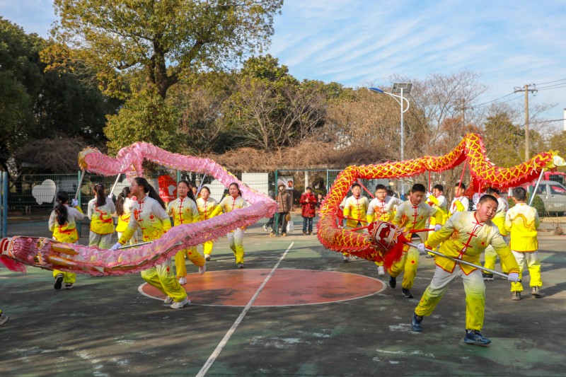 赶集过后,孩子们走进村庄展示才艺,10名学生身着喜庆服饰,舞起大龙、彩带龙,铿锵的音乐搭配灵动的舞姿,传递着新春的喜悦,也让大家深深感受着传统文化的魅力。